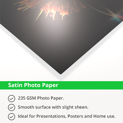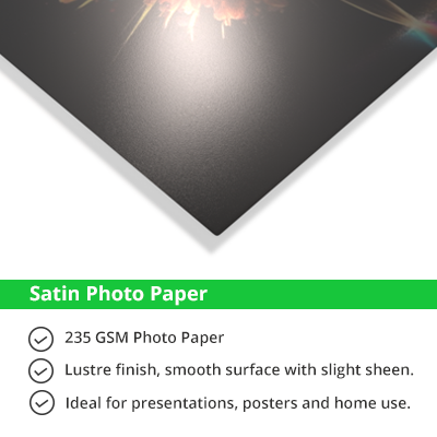 ![]() Glossy Photo Paper has a shiny finish. This makes colors appear more richly, but will glare in direct light. Available in professional photo lab grade, or even richer Premium grade.